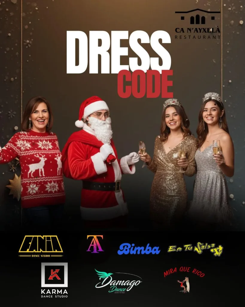 Comida de Navidad de EscuelasEste año lo celebramos a lo grande con las escuelas de baile de la zona. Get Started Detalles del evento Restaurante Ca n’Ayxelà (Vilafranca del Penedès) Domingo 21 de diciembre 12:30h 35€ por persona Pago: En efectivo Opción vegana | infantil